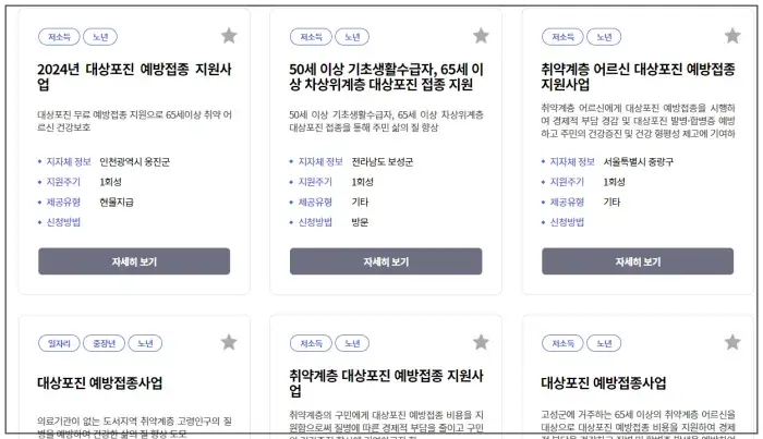 무료 접종 대상자에 해당되는지 사전에 주민센터나 보건소, 병원 등에서 확인해 보시길 바랍니다. 지자체에서 무료 또는 할인지원제도가 있는지는 복지로 홈페이지(온라인)에서 조회가능합니다. 아래 버튼으로 바로 확인해 보세요!