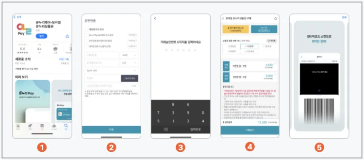 ▶ 본인명의 휴대폰에 온누리페이(구글 / 앱스토어) 또는 비플페이(구글 / 앱스토어) 어플 설치합니다.(만 14세 이상만 사용가능합니다.) ▶ 약관동의와 본인인증 완료 후 회원가입합니다. ▶ 회원가입 완료 후 거래승인번호 6자리 설정합니다. ▶ 페이 앱(APP)에서 온누리 모바일상품권 구입합니다.