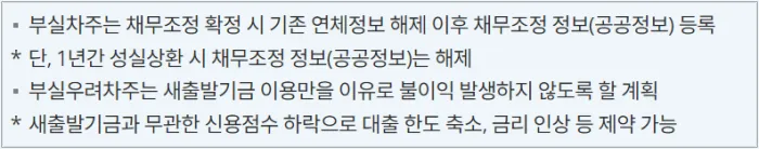 새출발기금 채무조정 확정에 따라 신용정보 변동은 아래 이미지를 참고하세요.