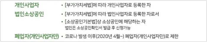 새출발기금 신청대상은 '2020년 4월~ 2024년 06월 중' 사업을 영위한(휴업 및 폐업 포함) 개인사업자 또는 법인 소상공인으로 확인되는 차주입니다.