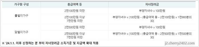 자녀장려금 신청자격 요건